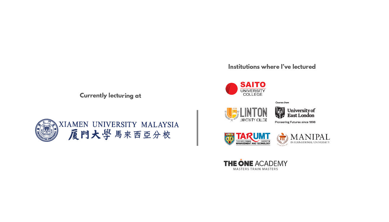 Disclaimer: I do not provide paid consultation for academic guidance to students currently enrolled in Xiamen University Malaysia, in line with my responsibilities and professional ethics and conduct as an Advertising Lecturer at the institution.